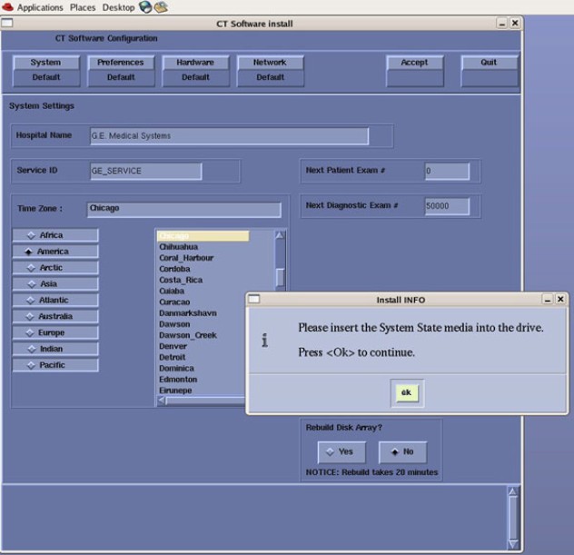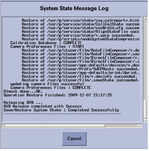 Confirm that a current System State Backup Media is on site. If unsure of the status of the System State, execute System State Save Restore procedure found in the Software Chapter of this manual. Save a System State Backup to either DVD-RAM or USB Media.