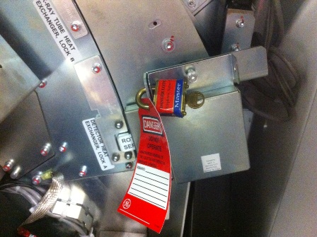 7. Flip the cover over the Rotational Service Lock and apply personal LOTO device and tag.