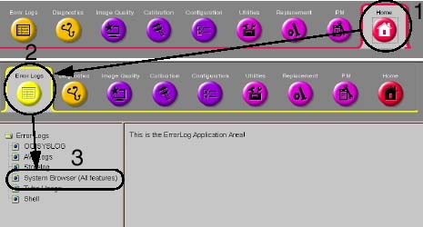 Starting from the Service desktop Home Page Tab, select the Error Logs tab, and then select System Browser from the list of file options. See Figure 1. If the CT applications are not up, bring them up by typing st in the console window, and then select service desktop.