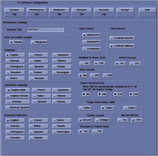Select Gantry Layout. Configures the preference for patient loading. Choose correct orientation depending on site specific Gantry layout.