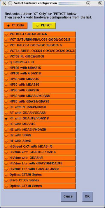 In the hardware configuration window, select the appropriate hardware configuration for the system. Click OK when done.