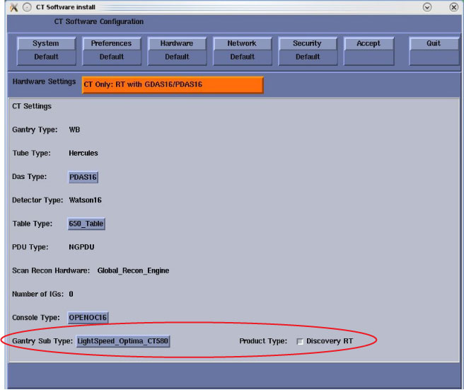 note:For Optima CT580, MUST toggle Product Type - Discovery RTOFF and select “LightSpeed_Optima_CT580” as Gantry Sub Type.