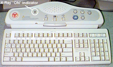 A backlit x-ray “ON” indicator is located on the SCIM /GSCB. It illuminates when x-rays are present. See Figure 5 and Figure 6.