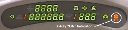 Both the gantry and the console have x-ray indicator displays. The system does not employ an audible x-ray ON indicator, nor is one required by FDA. The visual indicator illuminates when x-rays are generated.
