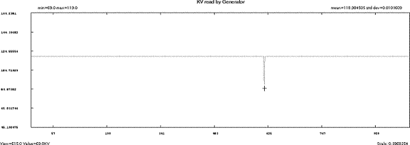 The Min, Max, and average values for kV, mA, and channel data. This information provides a quick way to determine the scale of the information that you are viewing.