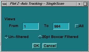 This selection allows you to select the start and end views to display for the Z Axis Channel data. After the selections are made, OK will process the data and display the results.