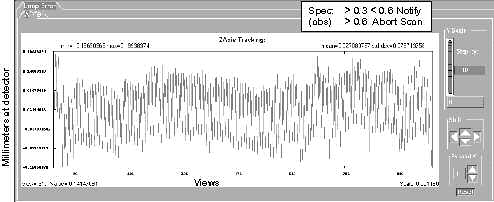 A value is not considered to be out of specification unless the limit is exceeded for a sustained interval of 100 views or more. In the cases where specifications are not given, consider plots informational only.