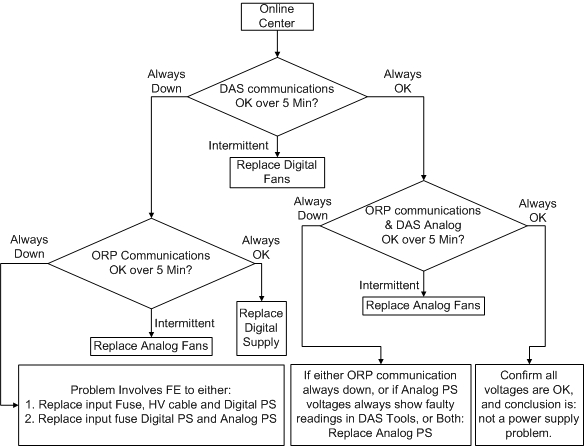 Figure 2 below shows an overview of an isolation process for GDAS-16 power supply problems.