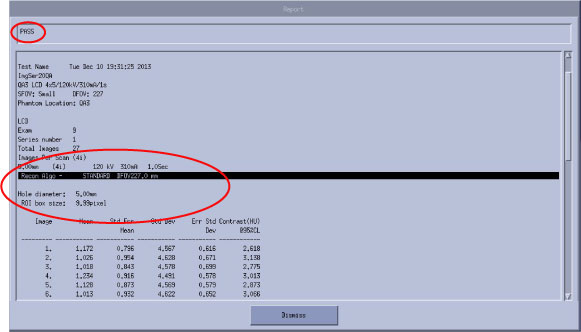 - Verify that the scan parameter values displayed in the report match those inTable 2 for the 5th 20cm QA Image Series.