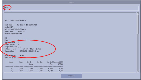 - Using the Auto 1x Tool on the Image Analysis screen, generate a Per Image QA#3 LCD report for the 4th series of the 20cm QA Phantom acquisition.