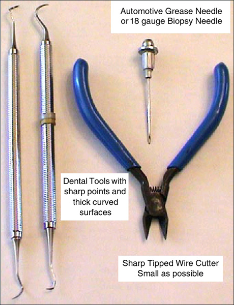 - Use a biopsy needle (18 gauge or larger) or a dental pick with a thick