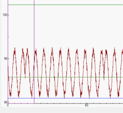- Wait for 20 sec then the green gating window line are shown,