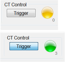 - Now start sending triggers to CT press Trigger when green triggers are sent. Press Trigger again to stop triggering if necessary.