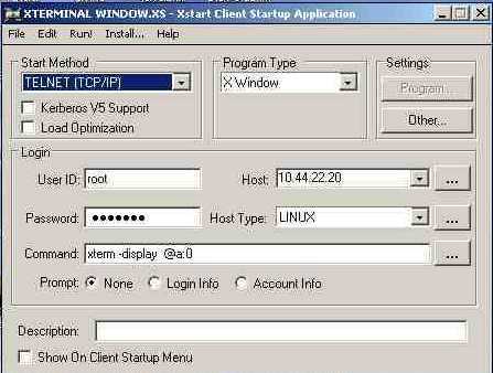 - Complete the cells in the Xstart Client Startup Application window