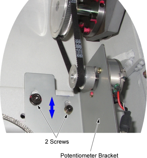 - Adjust belt by sliding the potentiometer bracket, and then tighten