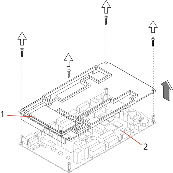 1 GTCB Cover 2 GTCB Assy - Secure the new GTCB cover, by tightening four (4) screws.