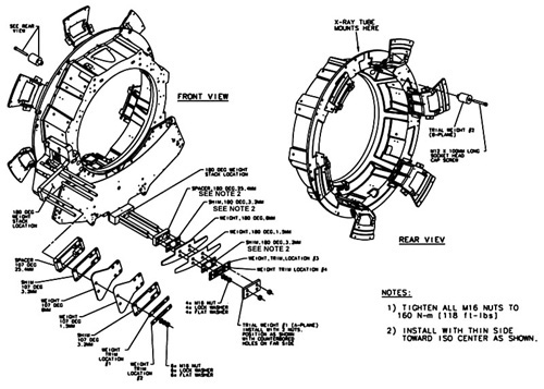 note: The order of the balance weights as installed on the gantry is very important. An entry of zero is valid if the particular weight type is not currently installed.The program will ask or instruct the user about the number of specific weights in 107 and 180-degree locations. The order is labeled as "inner to outer" with inner referring to weights closest to the gantry (rear) and outer as towards the table (front).