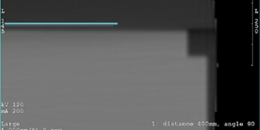 The figures below show examples of the line ending up above and below the phantom. The other end of the line was the end manually placed touching the top edge of the phantom. These examples indicate a condition that requires a measurement and subsequent offset correction to be applied to the gantry to straighten the image.