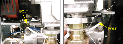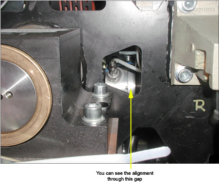 the small cutout in the gantry frame. See Figure 8. If you are aligned move on, otherwise loosen upper bolts