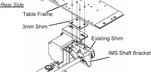 - Remove 4 screws, and install a 3mm shim between the rear IMS