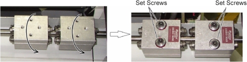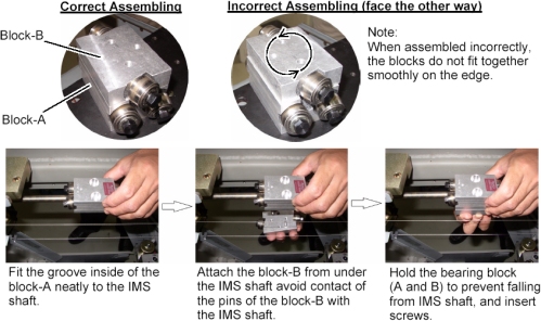 - note:Loosen alternately two set screws of one of bearing blocks holding the bearing block to prevent falling from IMS shaft, and remove the set screws, then remove the bearing block from the IMS shaft.