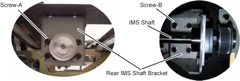 Loosen 4 screws (Screw-C) so that the front end of IMS shaft can be slid by hand. (The screws should hold the shaft in place, but allow movement if needed.)