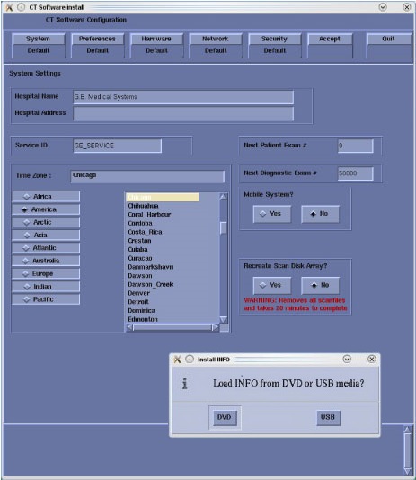 - Confirm that a current system state backup media is on site. If unsure of the status of the system state, execute System State Save Restore procedure found in the software chapter of this manual. Save a system state backup to either DVD-RAM or USB media.