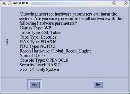 note: If a valid and current system state backup media is not available, select No and manually configure the Hardware Tab to define system and console type in accordance with the procedure Manual Configuring System INFO. - System state (Install INFO) media type decision window will
