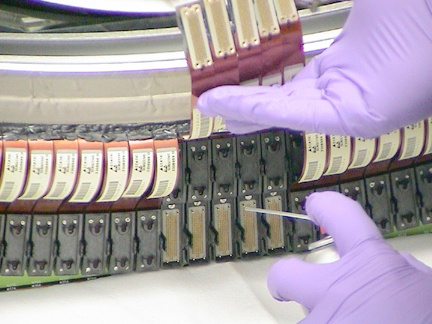 - Carefully install the interposers using your Nitrile glove protected fingers.