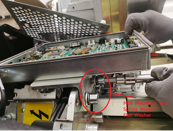 - Remove the ORP assembly from Gantry frame by unscrewing two M10 mounting bolts and washers.note: Don’t discard these bolts and washers, they will be used during re-installing.