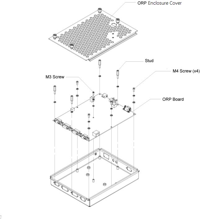 - Remove the ORP board from the enclosure by unscrewing screws and studs.