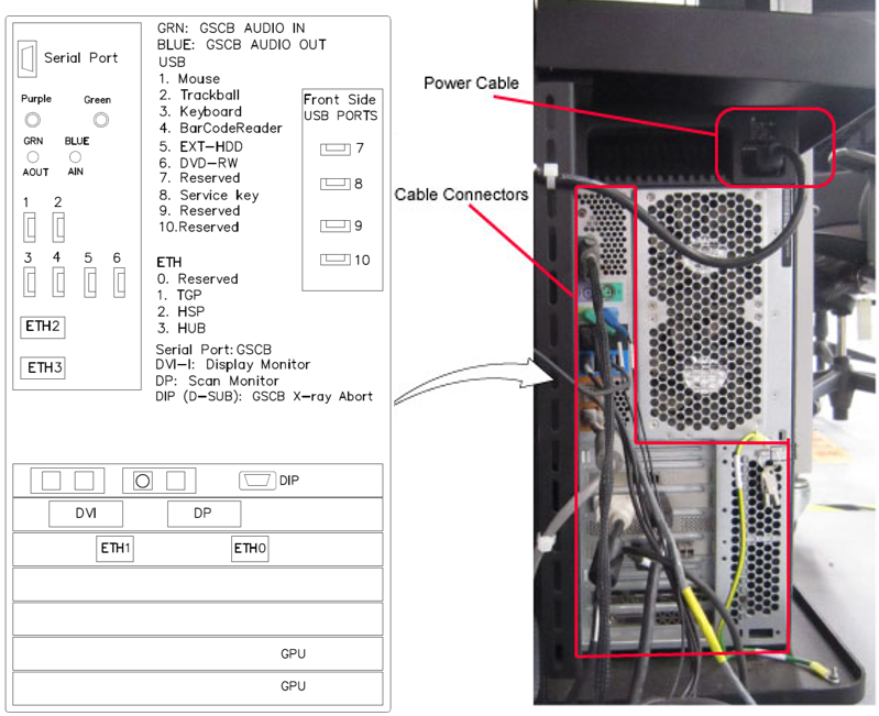 - Re-Connect the power cable and all cable connectors. Refer to the Host Computer port label attached on the rear cover.