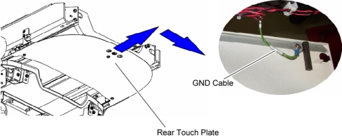 3. Attach the rear touch plate to the Table, and connect the GND cable to new rear touch plate, then hand tighten three (3) screws.