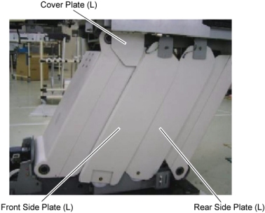 - Remove two screws, and remove the front and rear side plates from the Table base.