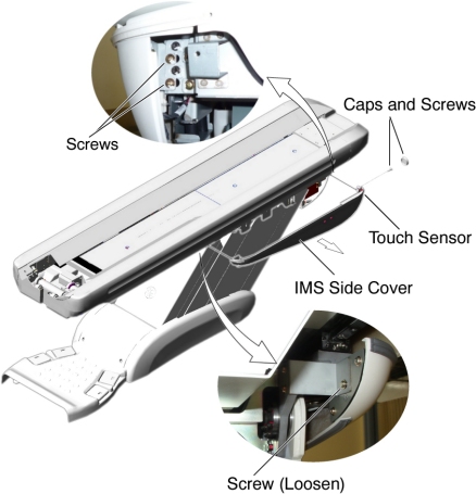 - Slide the IMS side cover free from the Table until the connectors of the touch sensor switches are visible.