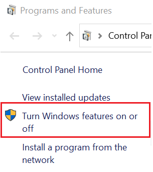Figure 6. Turn Windows feature on or off