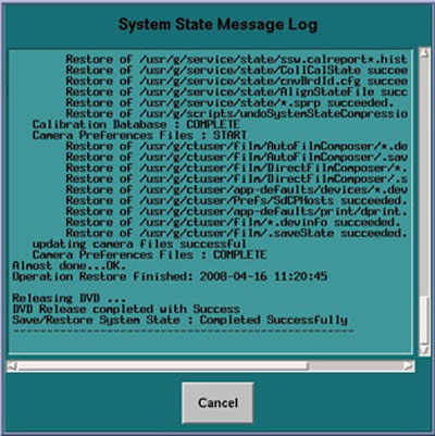 10. Verify that the "Save" of System State was successful. A message at the end of the System State Message Log Window should state: Save/Restore System State: Completed Successfully.