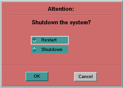 14. Reboot the Operators Console by selecting [Shutdown] Desktop, then select [Restart] in the Attention Window.