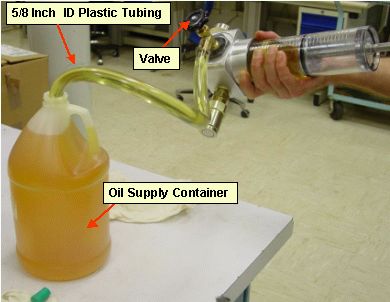note:In rare cases, there may not be enough room in apparatus cylinder to pull 30 units of oil from system. Perform oil removal in two steps, such as 15 unit each.