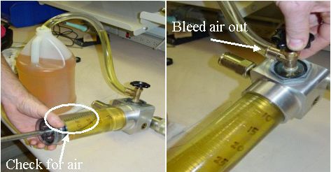 note:Piston handle up will force any air to rise to top of cylinder.