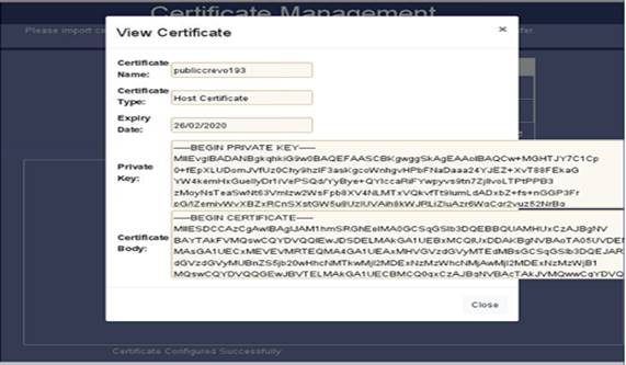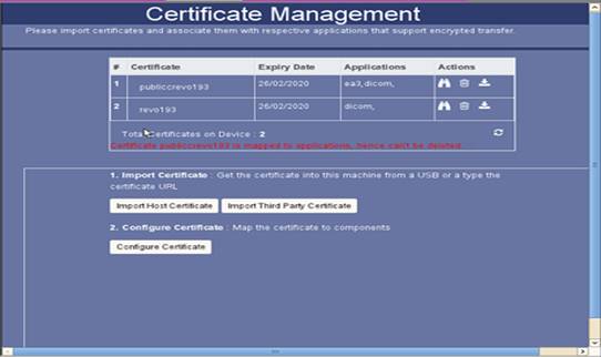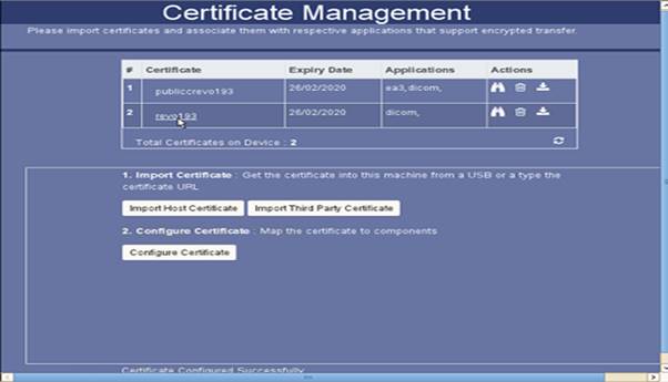 Figure 3. Certificate Management- Imported Host Certificate