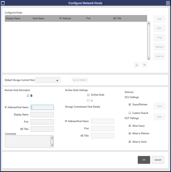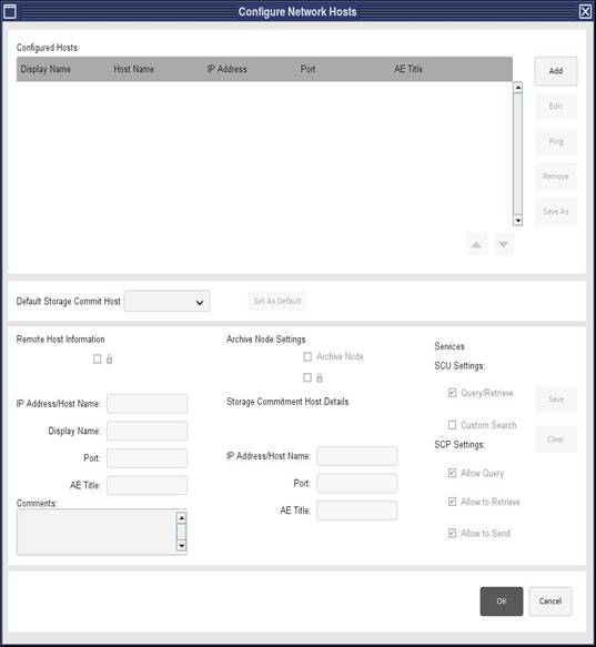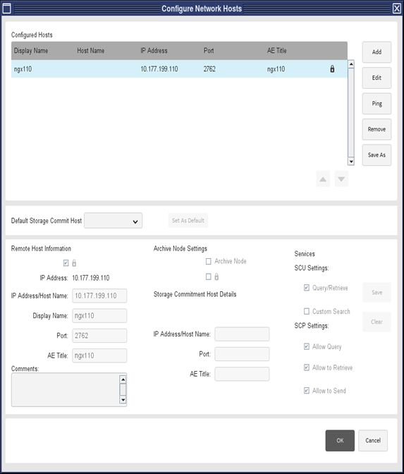 - Select configured network host entry and click on Ping. Ensure that remote host is alive. select Exam/Series/Image and perform any network operation on the configured host.