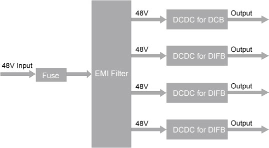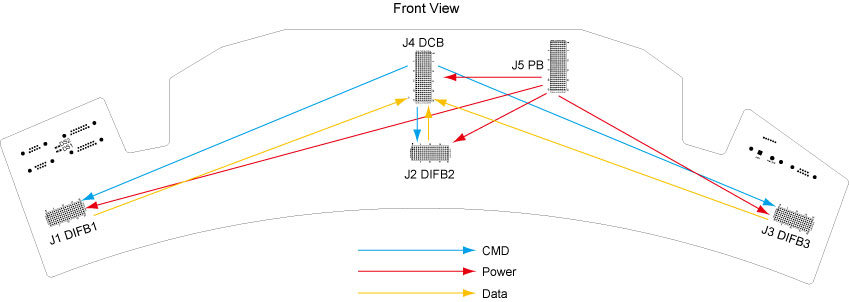 The DPB provides the 3.3V and +/-12V power to DCB and provides the analog 3.3V, digital 3.3, and digital 1.8V power to three DIFBs.