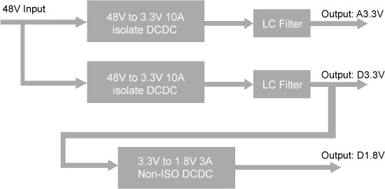 DCB needs digital 3.3V 4A, ripple less than 100mV