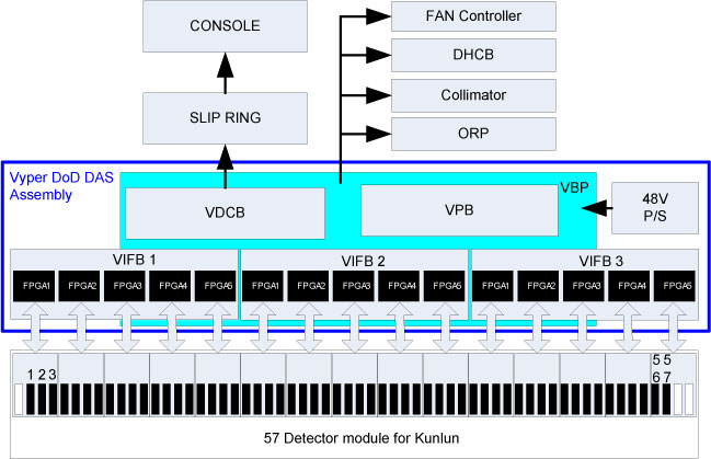 Compared with original product based on Watson detector, interconnection between DoD16 detector and DAS is changed from signal to digital signal. In this case, DAS and detector interface is simplified accordingly.