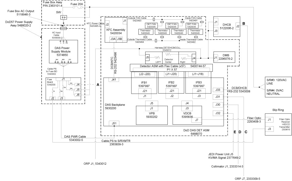 DoD 24V DC power supply cable from fuse board (J4) to collimator, ORP and detector