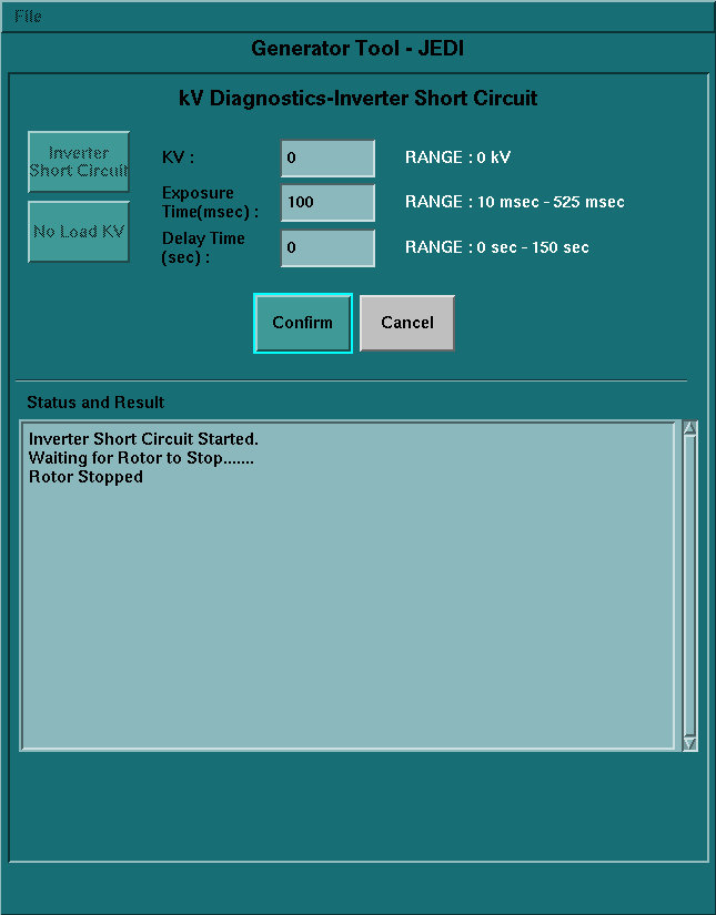 Clicking on the kV Diagnostics button will launch a separate screen with three diagnostic tools that are available for troubleshooting the X-Ray Generation subsystem. In order to run these tools, hardware interaction is required.