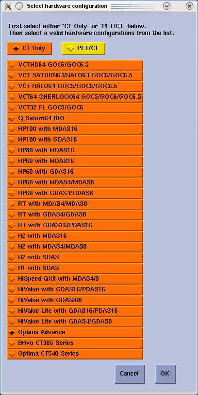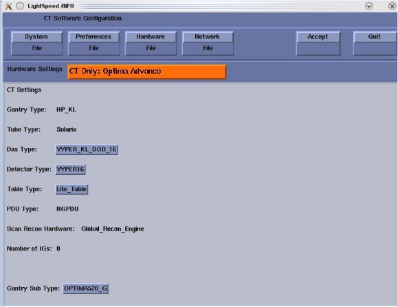 note: All optional buttons of the hardware settings must match configuration of site.note: Only can shoose OPTIMA520_G when select Gantry Sub Type.Figure 4. Hardware Setting