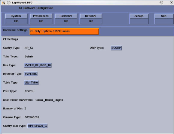 note: All optional buttons of the hardware settings must match configuration of site.note: Only can shoose OPTIMA520_G when select Gantry Sub Type.Figure 5. Hardware Setting