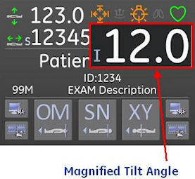 Semi Auto positioning enables customer to set table position automatically from one of the three preset position. GLC (Gantry LCD Controller) and TGPU will have the direct communication to send the selected preset parameters. Three anatomy selection is alternatively selected. Pressing current selected anatomy button will go no selection. When Remote tilt is required, Tilt angle display is magnified to lead the customer to press Remote tilt button.